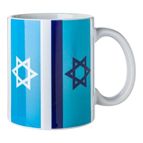 Een mooi gekleurde beker om kleur mee te bekennen! Rondom in blauw tinten en wit de vlag van Israel met Davidster.