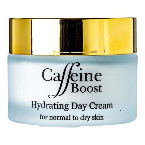Deze dagcrème is verrijkt met cafeïne en hyaluronzuur. De natuurlijke cafeïne stimuleert en de hyaluronzuur bevordert het vochtgehalte en de elasticiteit van de huid.