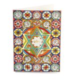 Art nr. 21144Dubbele kaart met envelop van de in Jeruzalem woonachtige artieste Gitta Bechshoft. Zij heeft deze kaart ontworpen op basis van middeleeuwse illustraties van Joodse manuscripten. Lees meer