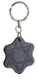 Leren sleutelhanger: Bloem met Davidster - Grijs
