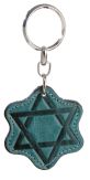 Leren sleutelhanger: Bloem met Davidster - Groen