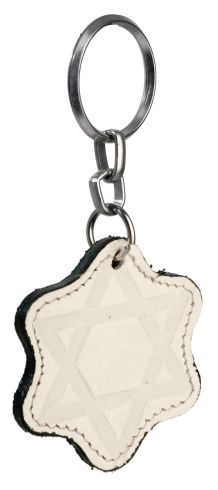 Leren sleutelhanger: Bloem met Davidster - Wit