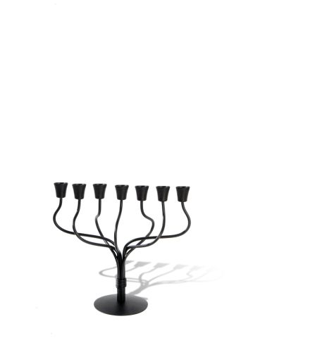 Art nr. 92052Smeedijzeren Menora Ontworpen en gesmeed door Tsach Levy en Rami Abramson. Prachtig vormgegeven en afgewerkt met poedercoating.Gemaakt in Bat Yam, ten zuiden van Tel Aviv. Lees meer