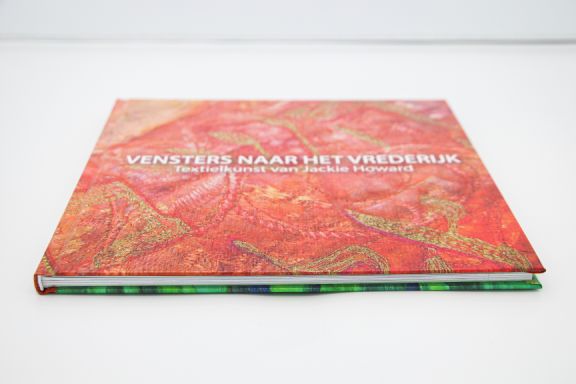 In Vensters naar het Vrederijk vertaalt textielkunstenares Jackie Howard bijbelteksten naar rijke structuren, die ontroeren en de kijker uitnodigen om dichterbij te komen. Zij zoekt naar een vernieuwende visuele taal, om oude waarheden weer tot leven te wekken.