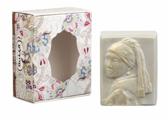 Art nr. 73359Originele reproductie in zeep van het beroemde schilderij van Johannes Vermeer, dit heerlijk geurende zeepje is een prachtig cadeau-idee voor iedere kunstliefhebber. Lees meer
