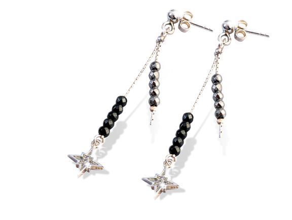 Prachtige zilveren oorhangers met fonkelende ster en bolletjes. Past heel goed bij de dubbele ketting met ster!